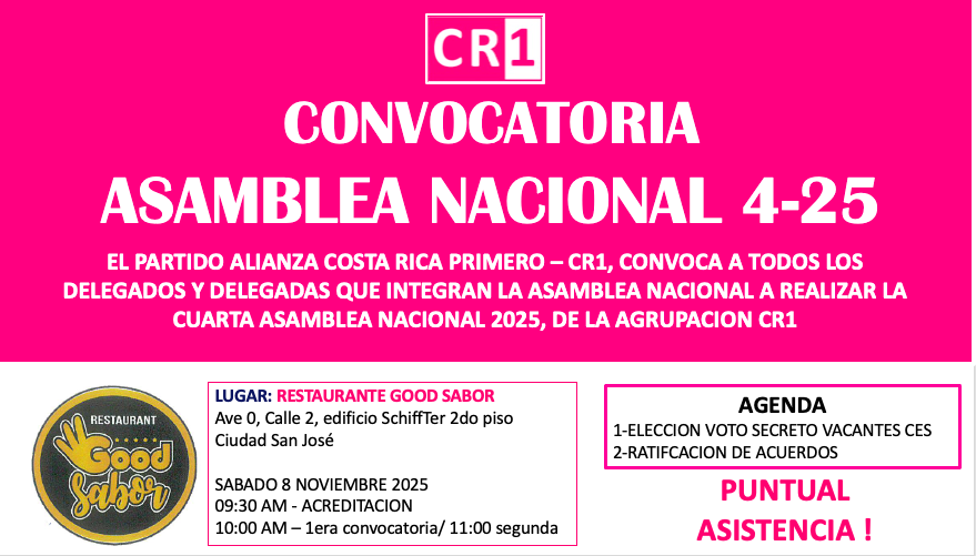 El partido político Alianza Costa Rica Primero surge de un sueño basado en valores democráticos, respeto al ser humano y amor por el país. Busca ser una herramienta política nacida de las comunidades, promoviendo su participación libre y soluciones a problemas como la seguridad, educación, salud e infraestructura.